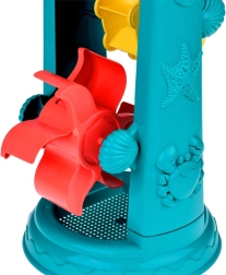 The children's sand set is carefully designed with motifs of sea creatures such as fish and octopus. The main attraction is a 37-centimeter water wheel into which kids can pour sand or water and watch the *dual wheels* spin. This supports the development of logical thinking and understanding of causal relationships.