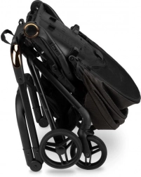 The stroller folds with one hand to compact dimensions, and thanks to the integrated handle it is comfortable to carry. Three-position reclining backrest including lie-flat, an adjustable footrest, and an extendable canopy give your child maximum comfort. Safety is ensured by a 5-point harness, a removable bumper bar, and a double lock against accidental folding.