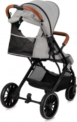 The stroller has easy-to-steer, puncture-proof wheels that ensure comfort. Thanks to their large size — 10" — they are ideal even in the most demanding conditions. The central brake of the MoMi ESTELLE DAKAR stroller is very convenient to use. Under the stroller there is a practical large basket with a load capacity of up to 2 kg.