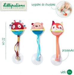 The set of floating balls by Lilliputiens is easy to clean and quick-drying. Each ball features an animal character - Bear Cesar, Lemur George, and Fox Alice, which are typical of the brand. The balls are light, soft, and float on water, and with the wrist strap, they are always within reach. Thanks to the rubber suction cups, they can be attached to smooth surfaces like the bottom of the bathtub.