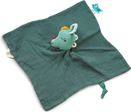 Dragon Joe cuddle toy is designed to provide maximum comfort and a sense of security to children during sleep. It is made from organic cotton and its filling is 100% polyester, which ensures softness and durability. Children can play with this plush as a puppet, offering fun storytelling options. The cuddle toy measures 32 x 32 cm and can be easily machine washed on a gentle cycle at 30°C.