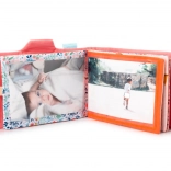 A family photo album like a book for children from 9 months, featuring Stella the deer. The front cover has a space for a photo of the proud owner. Place photos of mom, dad, siblings, grandpa, and grandma on the following pages. This way, children will always have their loved ones close at hand. The album has 10 pages and measures 15 x 18 x 3 cm. The surface is washable. The album is made of 100% polyester and acrylic knit. It fits photos sized 18 x 15 cm.