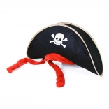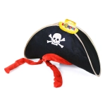 Transform into the star of any costume party with this Pirate Captain Hat designed specifically for adults. Its rich black velvet fabric is adorned with a striking pirate skull print, vibrant red ribbon, and elegant gold trim. Enjoy hours of fun and become the center of attention at any carnival event.