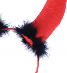 Kick off a hellishly fun time with maxi devil horns that stand out at first glance. The soft felt horns are firmly attached to a satin headband, so they stay in place and sit comfortably even during longer wear. The soft feathers add impressive volume and enhance any devil costume.
