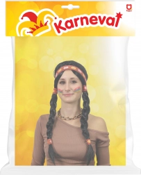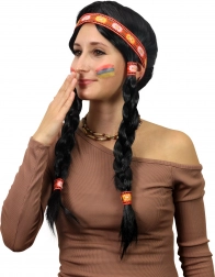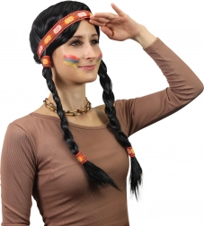 The wig includes a stylish headband and patterned ribbons on the braids that enhance the Native-inspired appearance and give your costume a unique character.