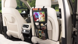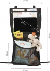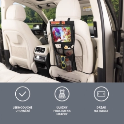 The car seat organizer is the ideal solution for entertainment during the journey. It protects and maintains order in the car with pockets for tablets and toys, with easy installation.