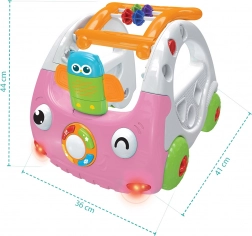 On the sides, you’ll find activity cubes, plus a puzzle and a counter that develop fine motor skills and logical thinking. The interactive key with buttons activates light and sound effects that encourage exploration. The cute car design quickly becomes a favorite with kids.