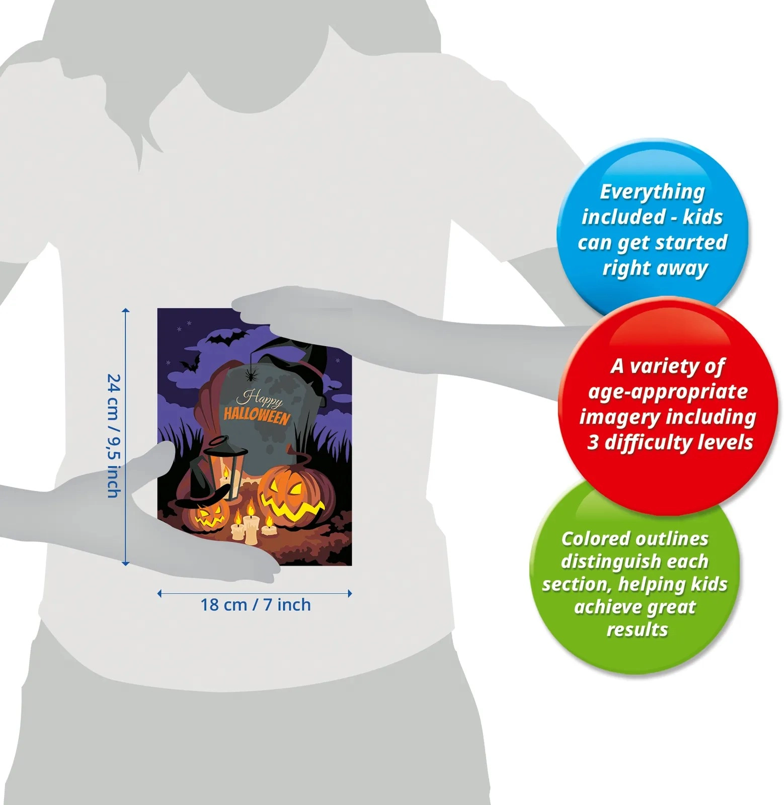 Step into the moody world of Halloween and color the motif step by step by following the numbers. High-quality workmanship from RAVENSBURGER ensures vivid colors, precise lines, and the joy of a finished result that makes a great seasonal decoration for a child’s room or living room.