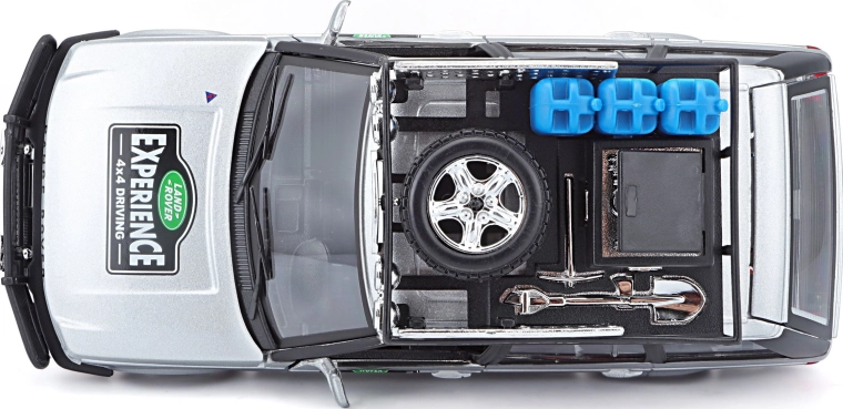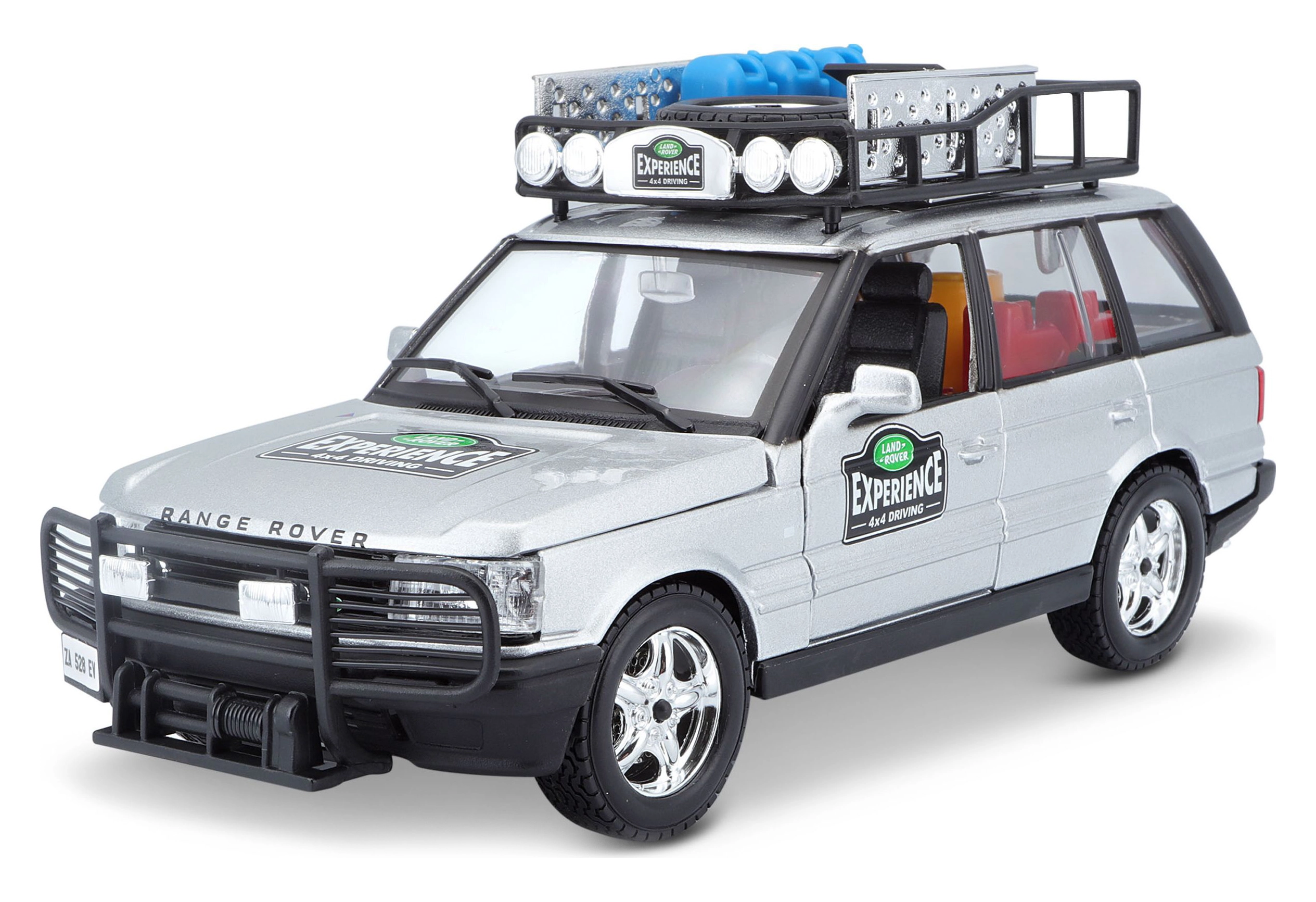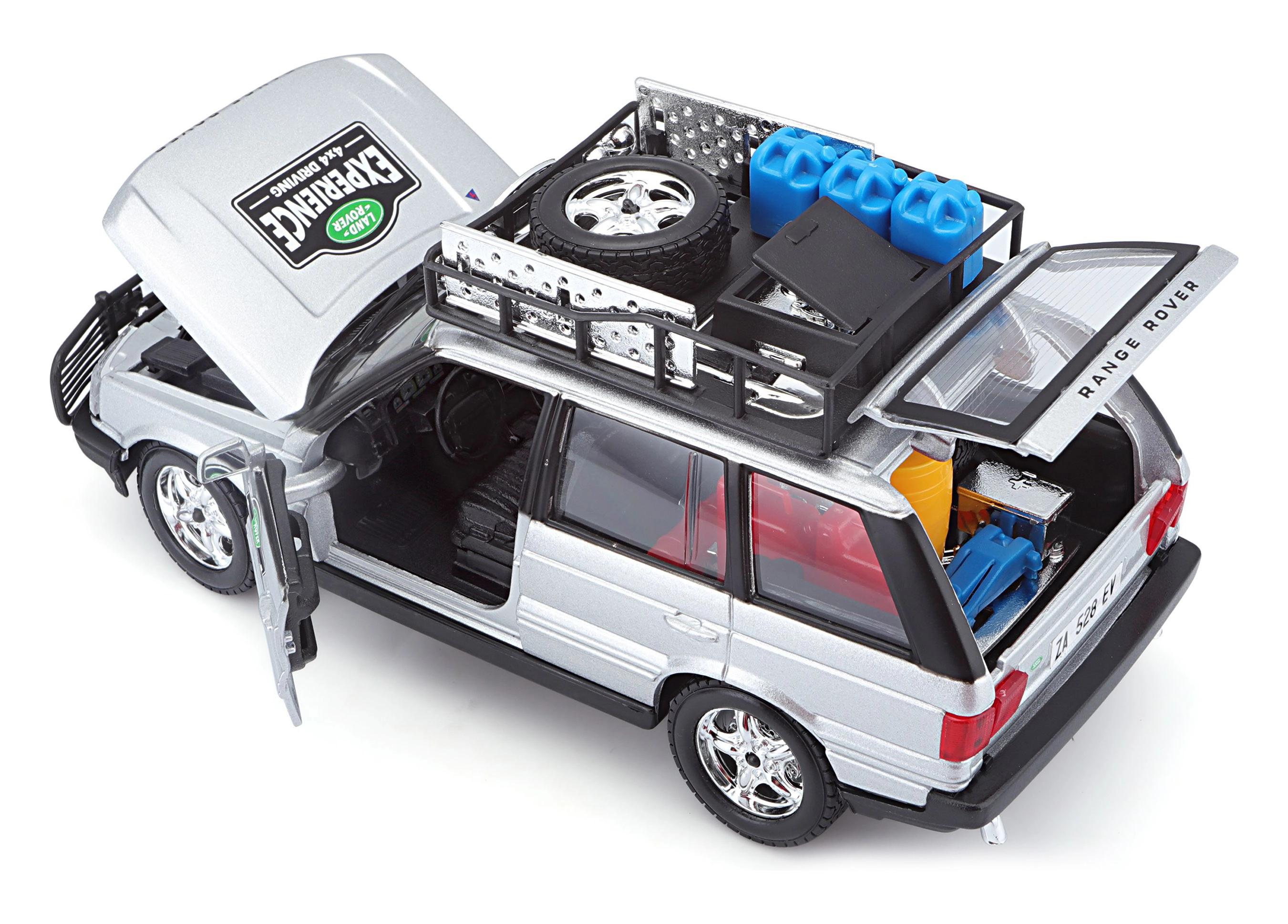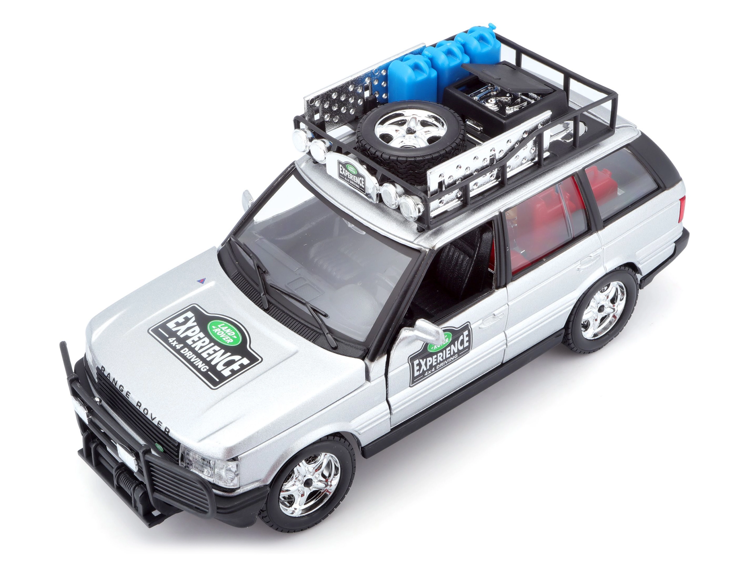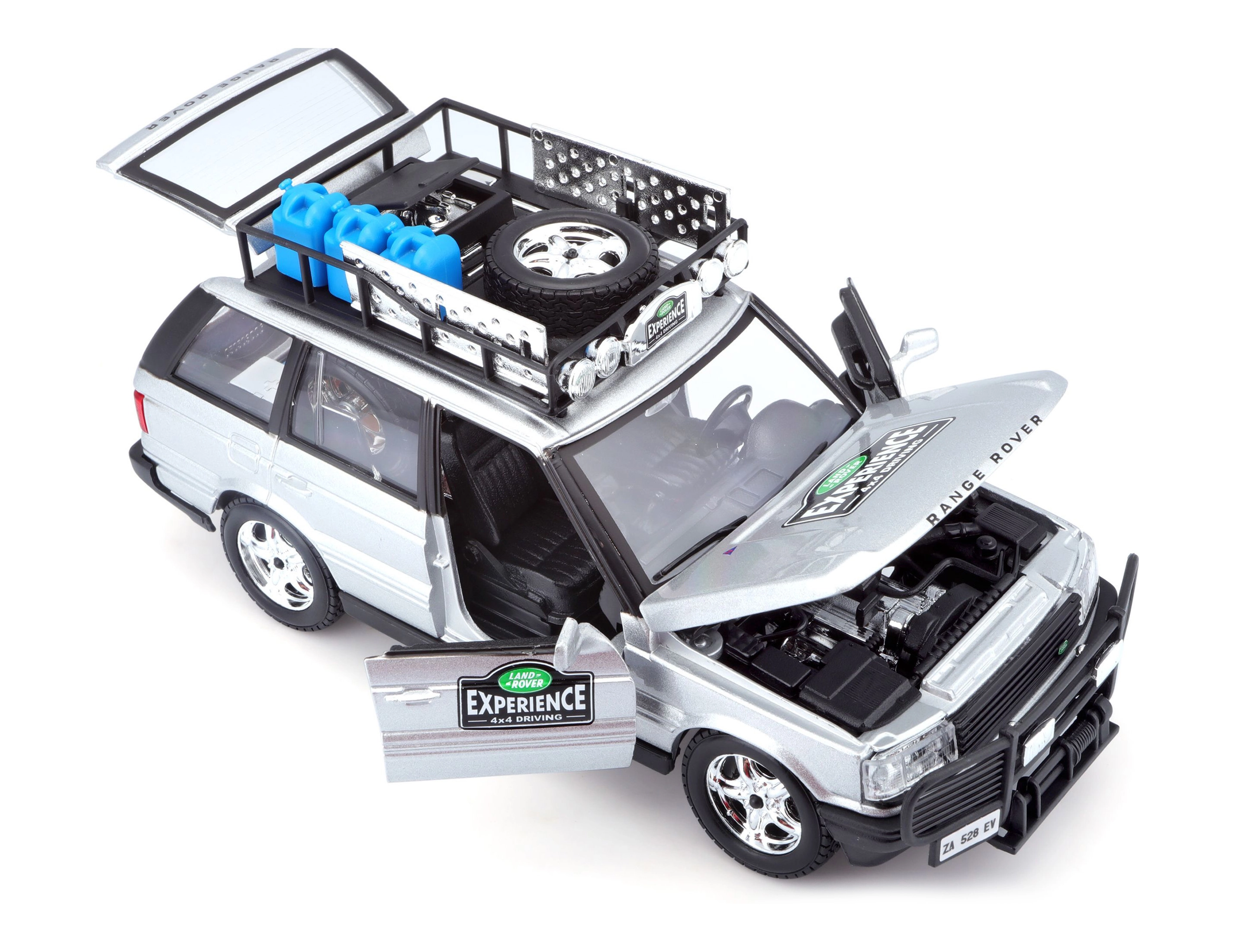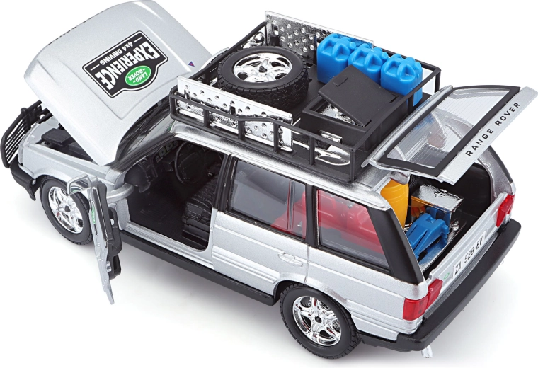 Detailed 1:24 die-cast model of the iconic RANGE ROVER in silver will delight collectors and kids alike. It features opening parts, free-rolling wheels, and plenty of realistic off-road accessories on the roof rack. A great gift and a stylish display piece.