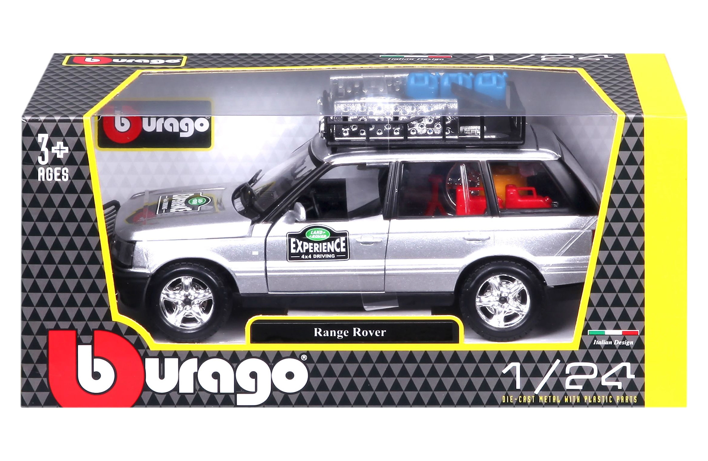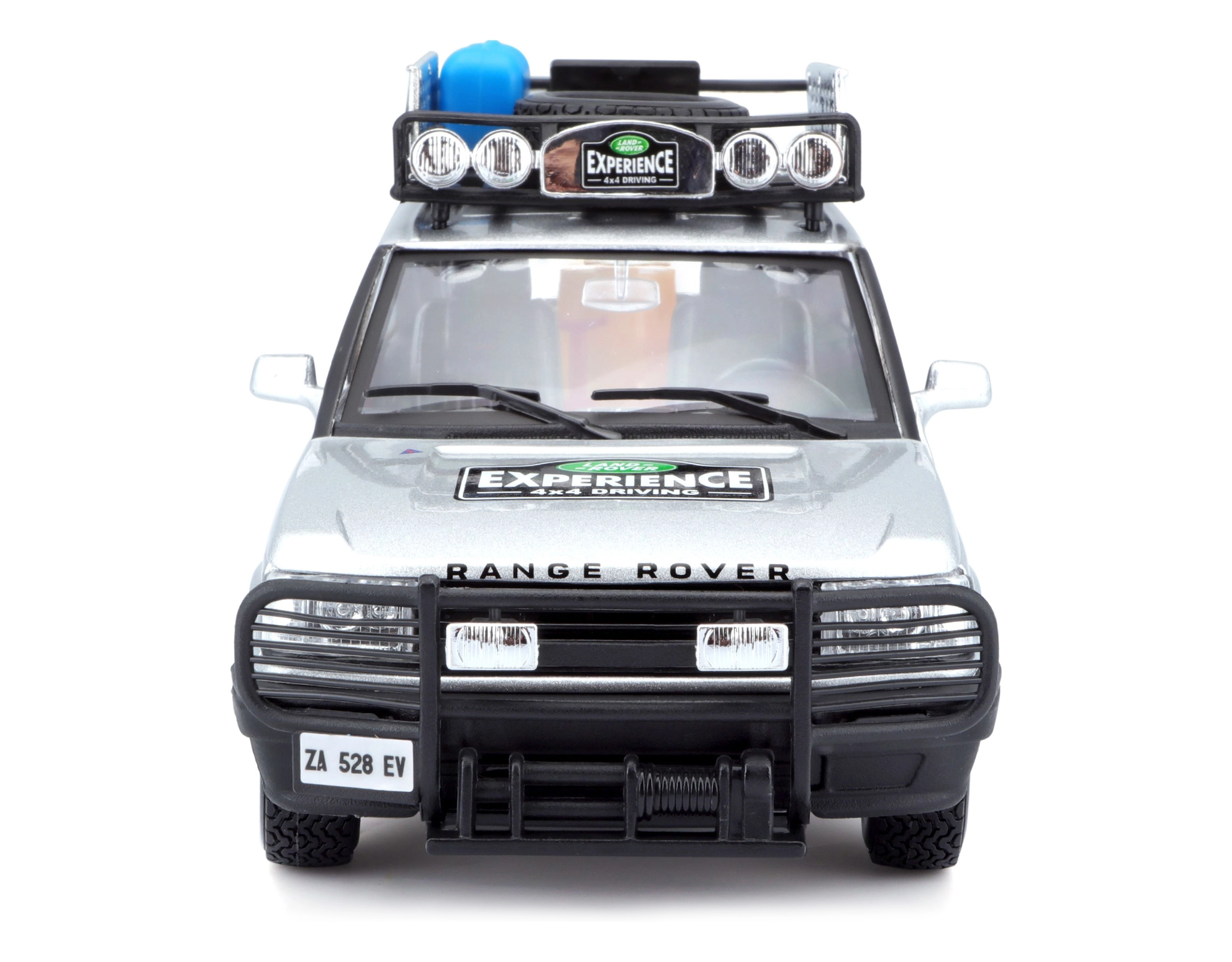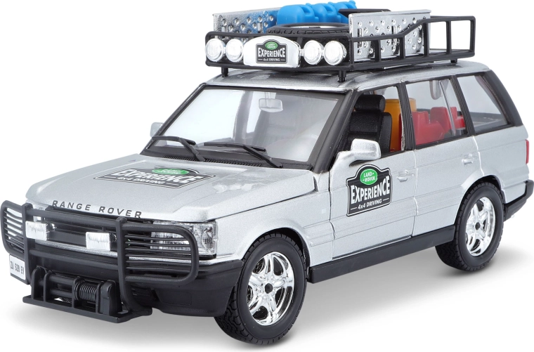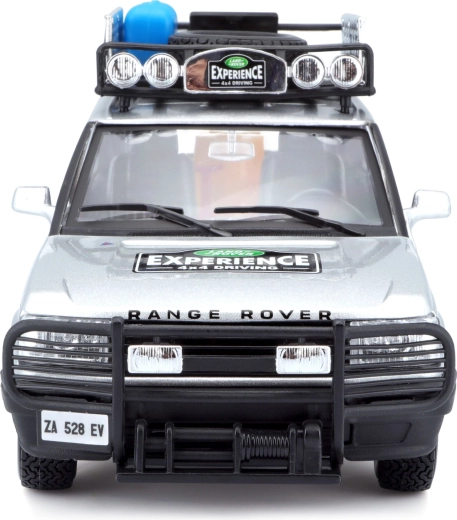 This meticulously crafted RANGE ROVER model in 1:24 scale brings authentic details that will please every off-road enthusiast. The silver body, complemented by a roof rack with accessories, a front bull bar, and realistic decals, creates an attractive look for both play and display.