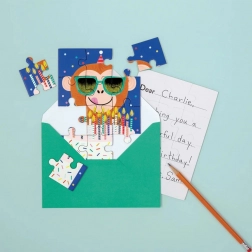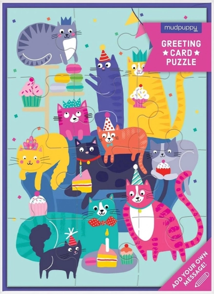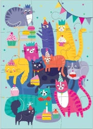 Assemble the colorful Cat Party puzzle and create an original greeting for your loved ones. Each of the 12 pieces is precisely cut and the cat images will brighten every home. You can easily place the puzzle in the included envelope, which is color-coordinated, and send it by mail.