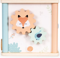 Discover playful learning with the ECOTOYS wooden educational cube. Each side offers a different activity—from sliders with owls and rotating gears to a clock and shape sorting. Thanks to its thoughtful design, the toy supports cognitive development, patience, and logical thinking.