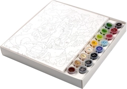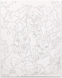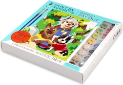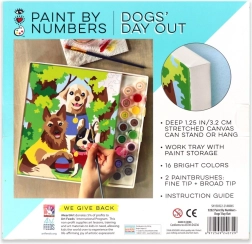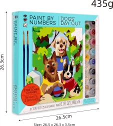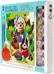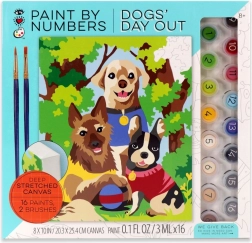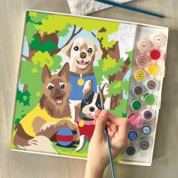 This paint-by-numbers kit helps you create, step by step, a colorful scene of three dogs on a walk. The numbered areas on the canvas match the numbers on the paint pots, so you know exactly where each shade goes. Painting is relaxing, fun, and suitable for beginners and children.