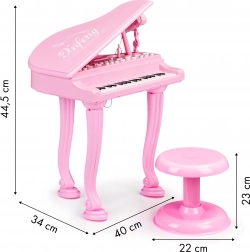 Enjoy unforgettable fun with this pink piano, which brings a musical atmosphere into your home. The piano is designed to allow children to compose their own songs and offers a realistic appearance of a real instrument. The set includes a stool ensuring comfort while playing for your little artist.