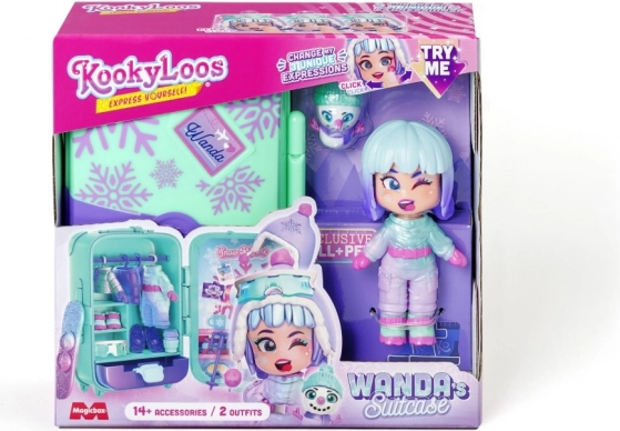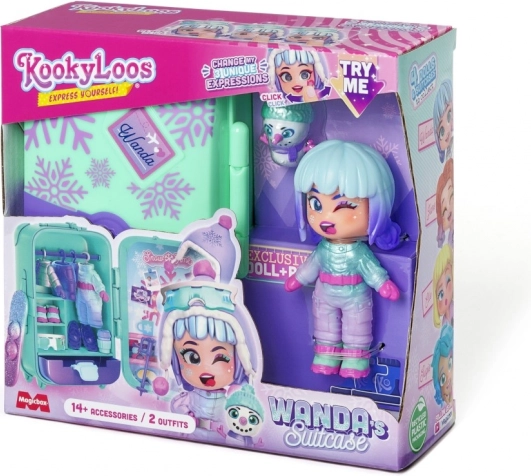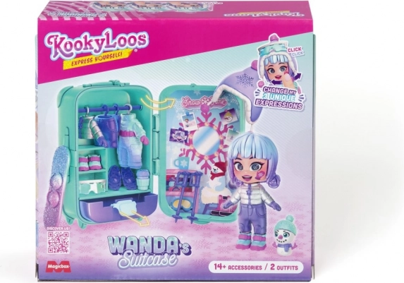 Set off on an adventure with the KookyLoos Wanda doll in a handy suitcase! You’ll get 2 stylish winter outfits, more than 13 accessories, and a click-to-change facial expression. Pack everything into the travel case and play anywhere.