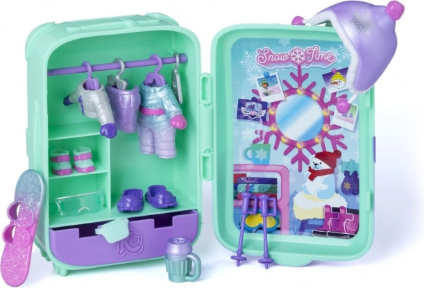 The suitcase doubles as a mini wardrobe and storage space, keeping all outfits, pet, and accessories neatly together. Two winter outfit combos, a board, and themed accessories support imagination and fine motor skills.
