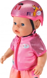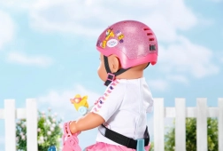 The helmet impresses with a bright pink color with glitter and fun stickers—ideal for stylish outings with the BABY born doll.