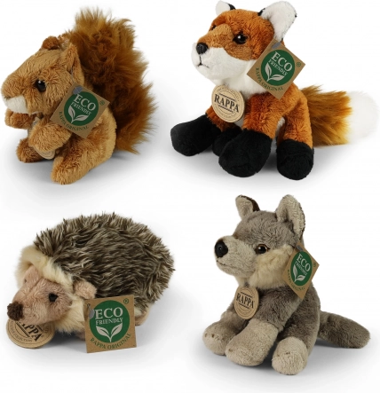 Forest plush animals (fox, squirrel, hedgehog, wolf)