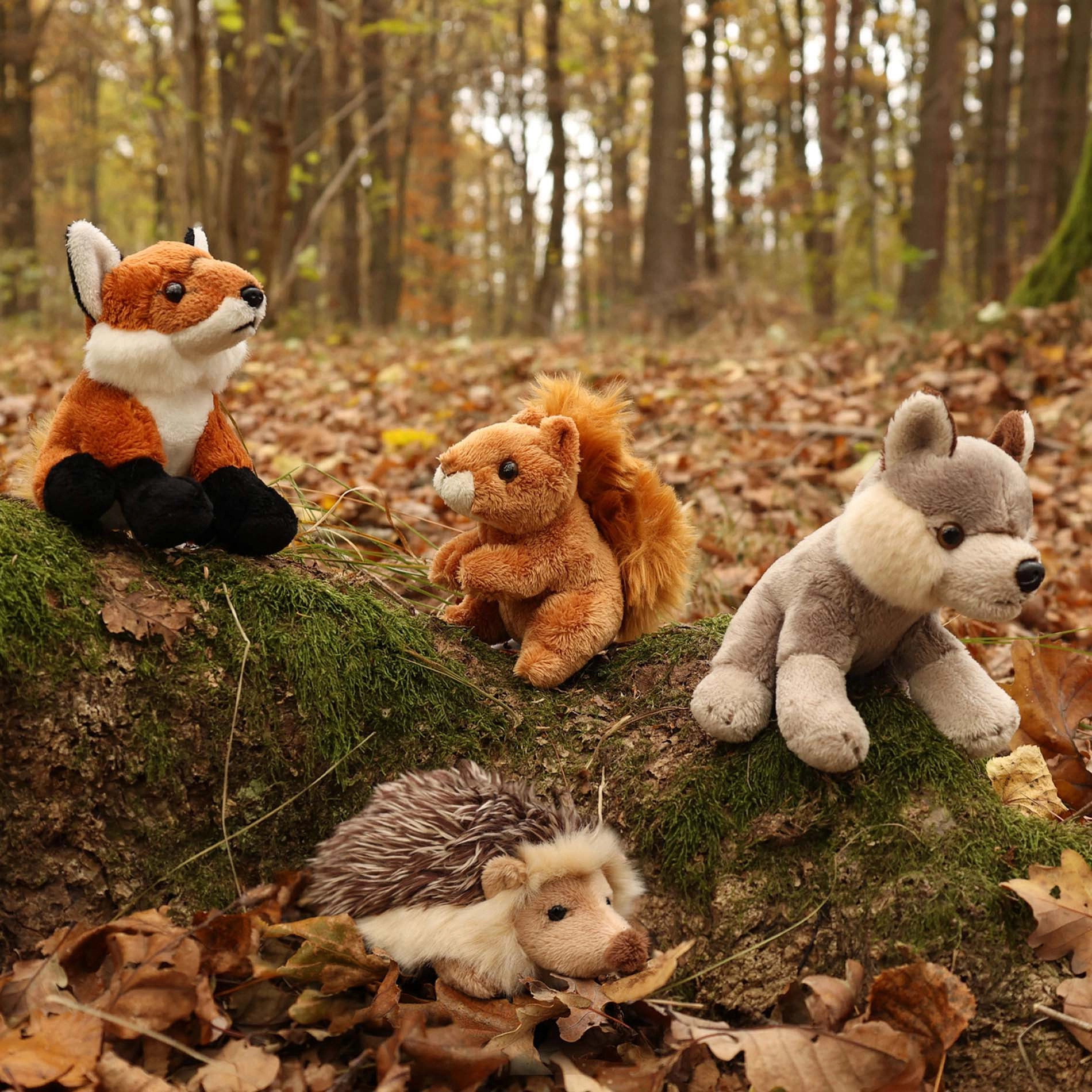 The fox, squirrel, hedgehog, and wolf feature true‑to‑life colors, expressive eyes, and soft fur. They spark imagination and invite cuddling and telling woodland stories.