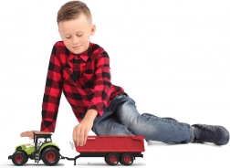 A modern tractor with a red trailer from the My Little Farm collection will delight every little farmer. It offers light and sound effects, a flywheel for smooth driving, and a detachable trailer for even more play options. Batteries are included.