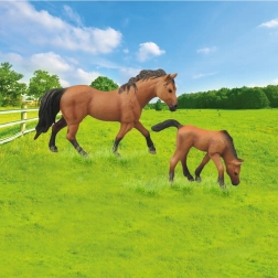 This set includes two plastic horses – an adult horse and a foal, ideal for educational and decorative purposes.