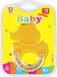 This cheerful duck rattle and teether will delight every baby with its colors and gentle rattling sound. The different teether surfaces provide relief during teething and encourage the child to grasp, thereby developing fine motor skills. The light, ergonomic shape is designed for safe and comfortable holding by small hands.
