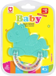 The teething parts provide relief during teething, while the horse shape and ergonomic grip develop fine motor skills and hand–eye coordination.