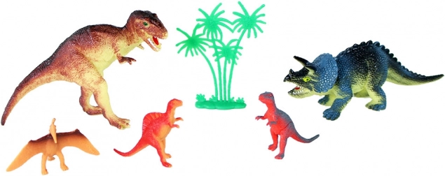 - 5 dinosaur figures, 1 plant