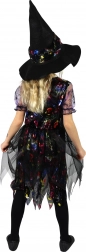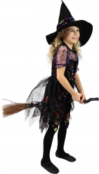The costume includes a perfectly matched witch hat and a skirt with an original design.