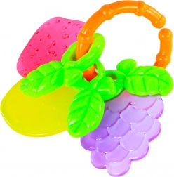 This playful rattle/teether with fruity motifs captivates little ones with vibrant colors and a pleasant texture that massages the gums and helps during teething. Its practical shape supports a natural grip and the development of fine motor skills.