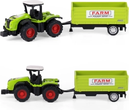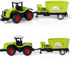 The tractor, complemented with a detachable trailer, is not only a great addition to a child's collection but also a means to develop imagination and understanding of agricultural machinery. The total length of the setup is 18 cm, ensuring easy handling and manipulation.