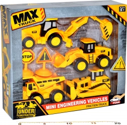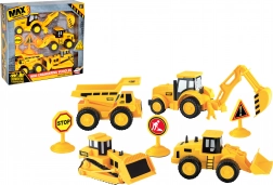 Set of construction machines for young construction technology enthusiasts. It contains four diverse machines, including bulldozers and diggers, which expand the possibilities of play.