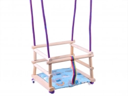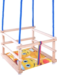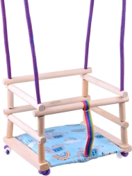 Safety is ensured by a safety strap that protects the child from falling out of the swing.