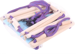 The ropes are finished with plastic hooks that allow quick mounting or dismounting of the swing from hooks.