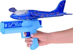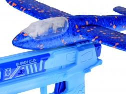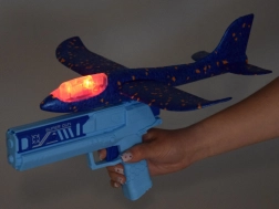 Enjoy safe and easily manageable play with this foam plane, designed to be launched using a practical, ergonomically shaped gun. The plane, made from lightweight polystyrene foam, features LED lights that add visual appeal even during dusk play.