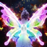 These magical children’s wings mimic large butterfly wings that beautifully shimmer and change color depending on the angle of light. Integrated LED lighting and mechanical wing movement create an eye-catching show that will delight every little fairy, elf, or butterfly.
