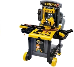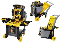 This well-thought-out set for little DIYers combines a workbench with side shelves, a convertible trolley for easy transport of tools, and a practical tool box for small items. It is ideal for children aged 3+ and helps develop dexterity, hand–eye coordination, and patience while screwing, hammering, and building.