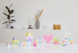 Discover the world of creativity with Plus-Plus BIG Pastel, a building set that offers children unlimited construction possibilities. The set includes 50 large building blocks in soft pastel colors, which are large enough for small children's hands.
