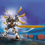 The mech features movable arms, legs, head, and torso for dynamic battle poses. It includes a pair of dragon wings and a large sword, plus a cockpit for a Cole minifigure.