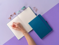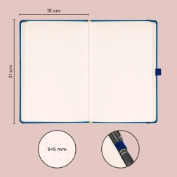 Discover the perfect blend of classic and elegance with our blue dotted notebook. This notebook, measuring 15 x 21 cm, is designed with practicality and style in mind. The surface is crafted to allow for easy embossing of company logos, making it an ideal choice for professional and personal use.