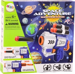 The Space Adventure game turns any kid's room into a mini range with a galactic vibe. The large fabric target with a colorful space motif and clearly marked point values motivates accurate shooting and learning numbers. Safe foam darts and balls with hook-and-loop stick to the target without sharp tips, so kids can have fun without worries.