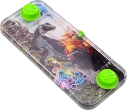 The pocket water game featuring a Carnotaurus dinosaur is simple yet addictive. In the clear water reservoir, colorful rings float freely, and your task is to use the two green buttons to apply just the right pressure so the rings land on the two pegs inside.