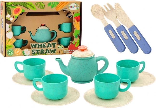 - The central piece of the set, a teapot, adds realism and joy to make-believe tea parties.