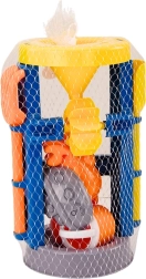 The large sand set with mill is ideal for small beach enthusiasts. This set includes a mill with two wheels, offering a practical sieve and funnel for efficient and creative play.