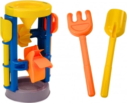 The large sand set with a mill offers complete equipment for outdoor sand play. Includes a large mill with dual functionality - a sieve for sifting sand and a funnel for precise dosing. Play becomes more efficient and creative because of this.