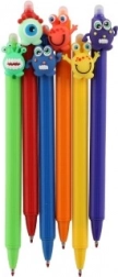 Each pen is topped with a funny character. The color mix delights kids and brightens everyday writing.