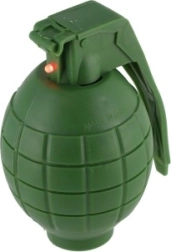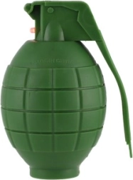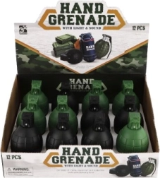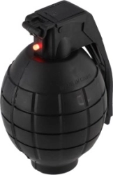 This plastic hand grenade is the perfect toy for kids who love military games. With its sounds and light effects, it adds realism to every adventure. The grenade is powered by 2 AG13 batteries, which are included, so kids can start playing right out of the box. The product is designed with children's safety in mind.