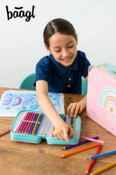 BAAGL School Pencil Case Three-tier Rainbow Pink