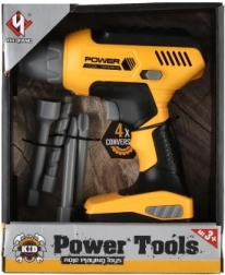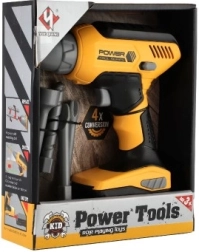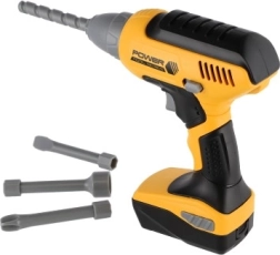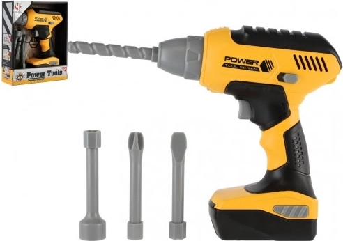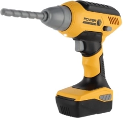 This kids' cordless drill in an iconic yellow-and-black color scheme faithfully mimics real tools and is a great companion for little helpers in the workshop and at home. Press the trigger to spin the attachment and hear authentic drilling sounds that enhance the play experience.