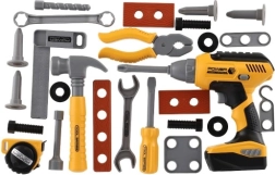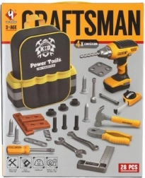 The set includes 28 pieces of tools, including a cordless drill, simulating real working tools for fun and educational play.